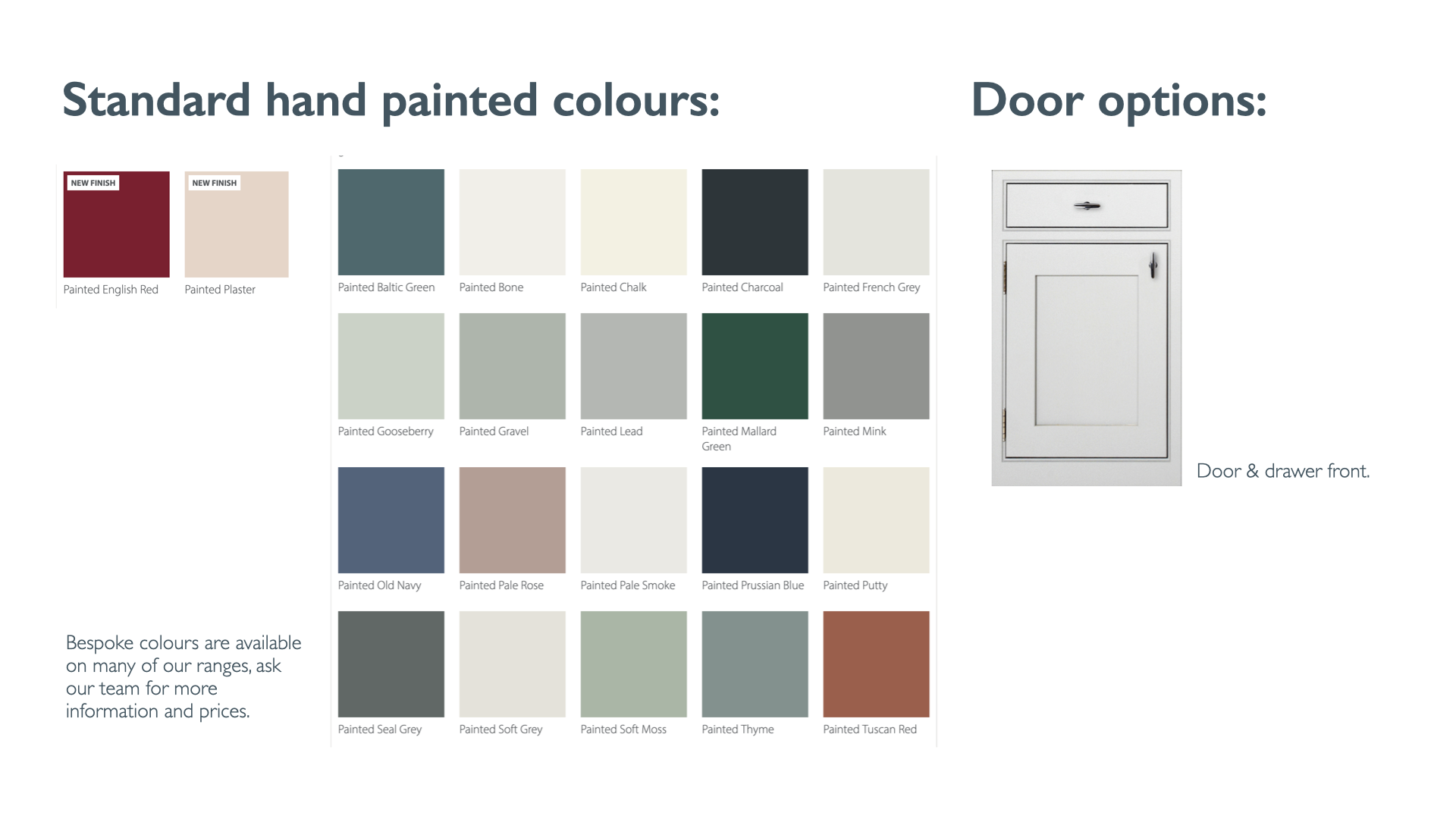The grand lines of this solid timber in-frame design create a range that can endure changes in fashion. Tetbury is available in Natural Oak or it can be personalised and styled with painted colour, enhancing the delicate beaded frame.